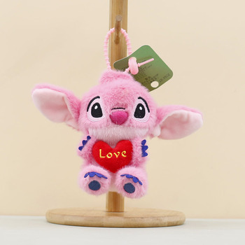 Llavero de Peluche de 12 cm, Kawaii, Anime, Stitch, Juguete de Peluche con Corazón, Color Azul y Rosa, Colgante para Mochila, Regalo